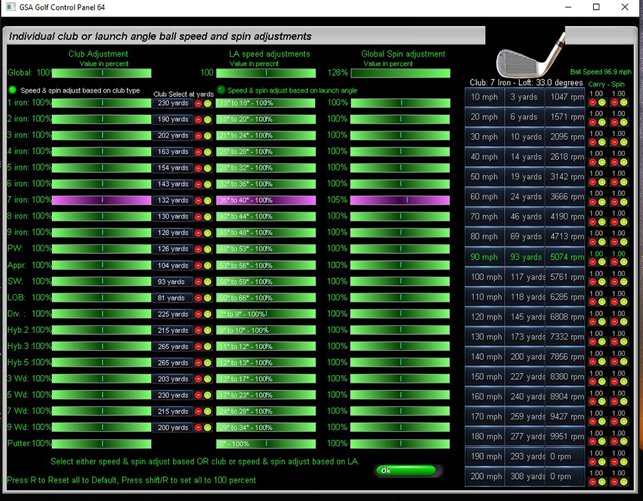 In addition, spin rates can also be adjusted for individual ball speeds for a specific club too.