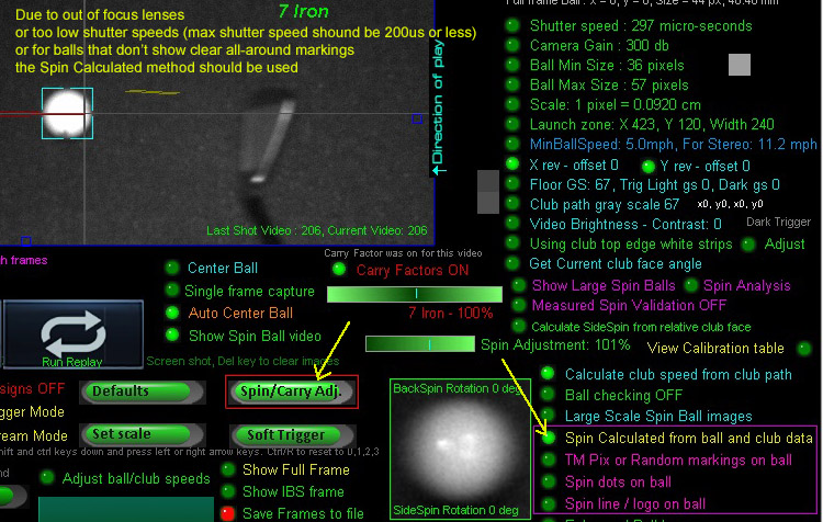 The biggest issue users are having is that the spin dot itself is not being detected due to incorrect ball Line/Spot GS (Gray scale) setup.