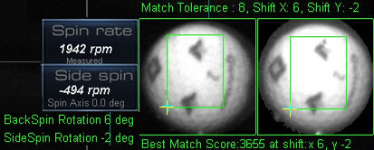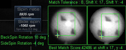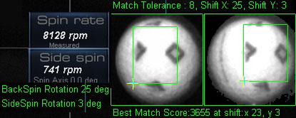 The SCX measures ball spin by shifting the markings from 2 adjacent (in flight) ball images in both the x and y directions and obtaining a best match.