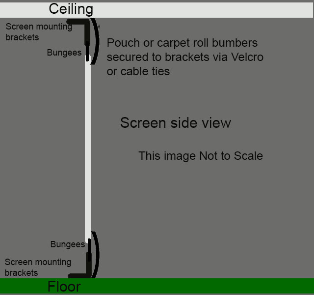 Attach the screen to the ceiling and floor mounted brackets via bungees or zip ties.