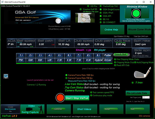 VisTrak interfaces with TGC (The Golf Club), GSA ProX, GS Pro, RedChain, E6 1.6 and E6 Connect golf game software.