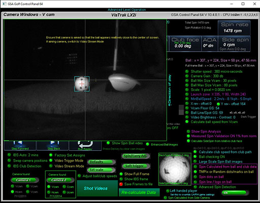 select the "Show Full Ball Frame" option and the "Video Stream Mode" option and aim the camera so that it appears close to the center of the screen