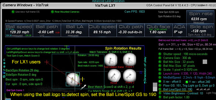 New: When using the ball logo to detect ball spin with LX systems, set the Ball Line/Spot GS to around 190