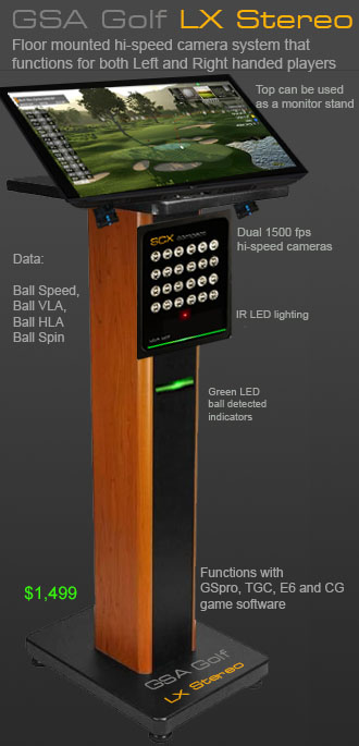 The LX LR consists of 1 platform floor mounted camera that captures ball VLA (Vertical Launch Angle) , HLA (Horizontal Launch Angle i.e. ball path Left/Right) and spin.