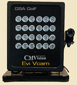The new VisTrak EVi golf launch monitor system consists of an overhead and side mounted camera