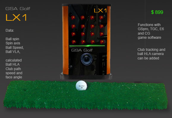 The GSA Golf LX functions with E6, GS Pro, CG3 and TGC (and more) game software packages
